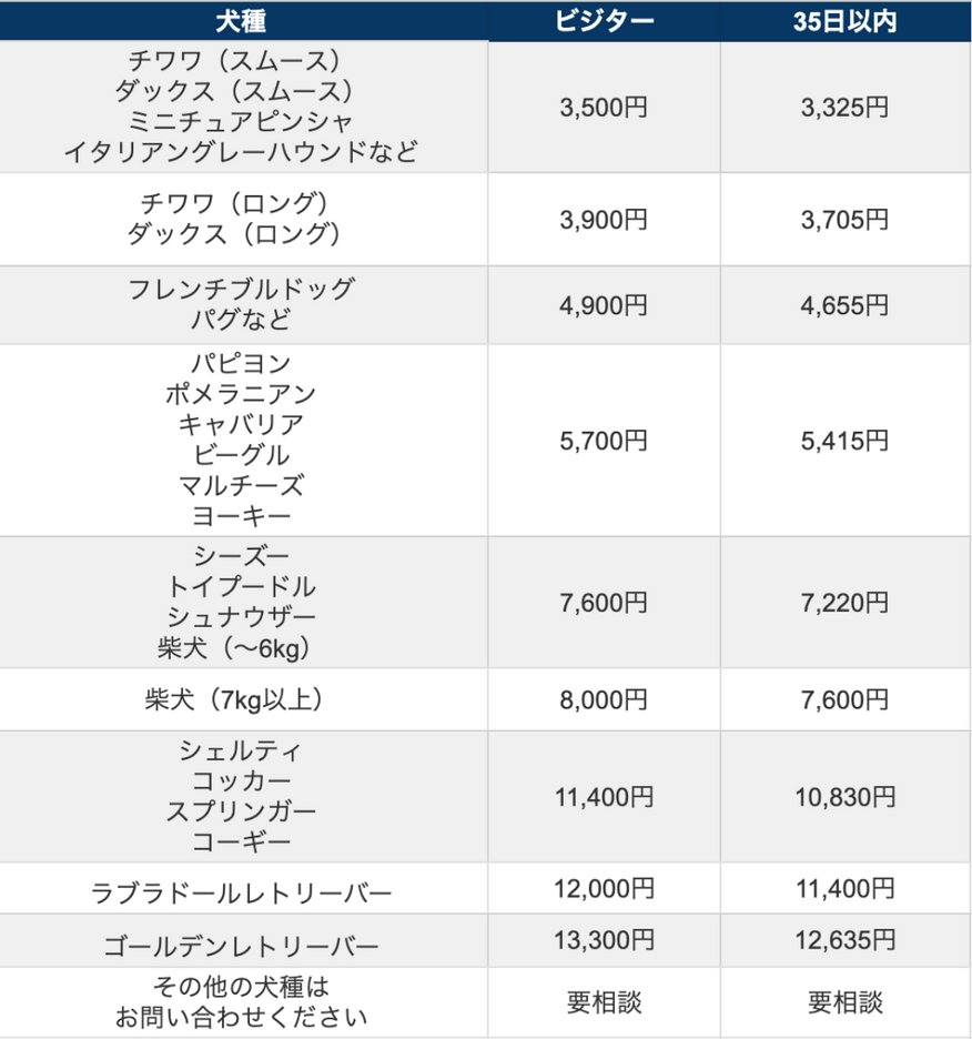 ※ご利用に当たり、すべてのワンちゃん猫ちゃんに1年以内の混合ワクチンと狂犬病予防接種(犬のみ)の証明証のご提示が必要です。